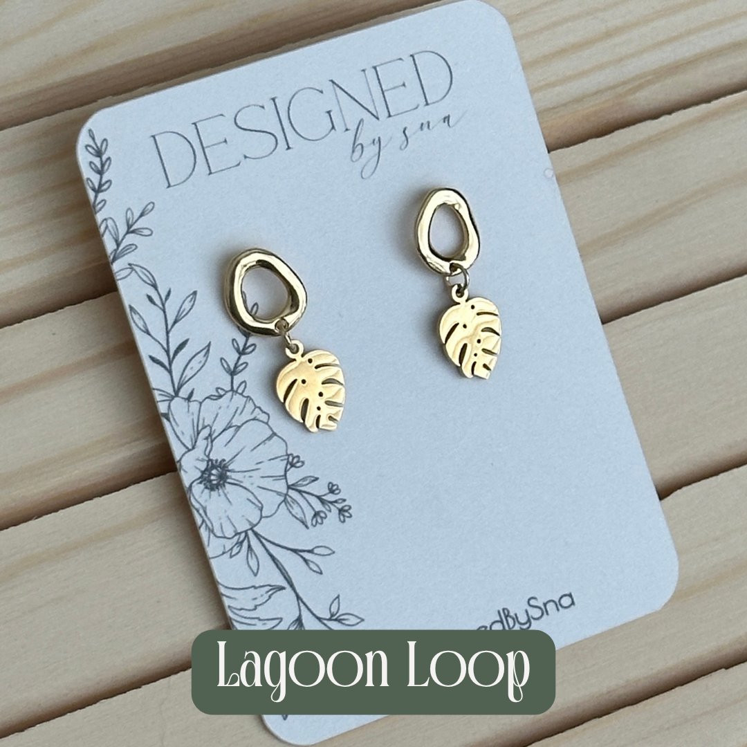 -Drape yourself in golden island magic with the Lagoon Loop earrings. The soft, wavy hoop catches the light like a calm tropical lagoon, while the delicate Monstera leaf sways gently below, bringing effortless beachy vibes to every outfit.